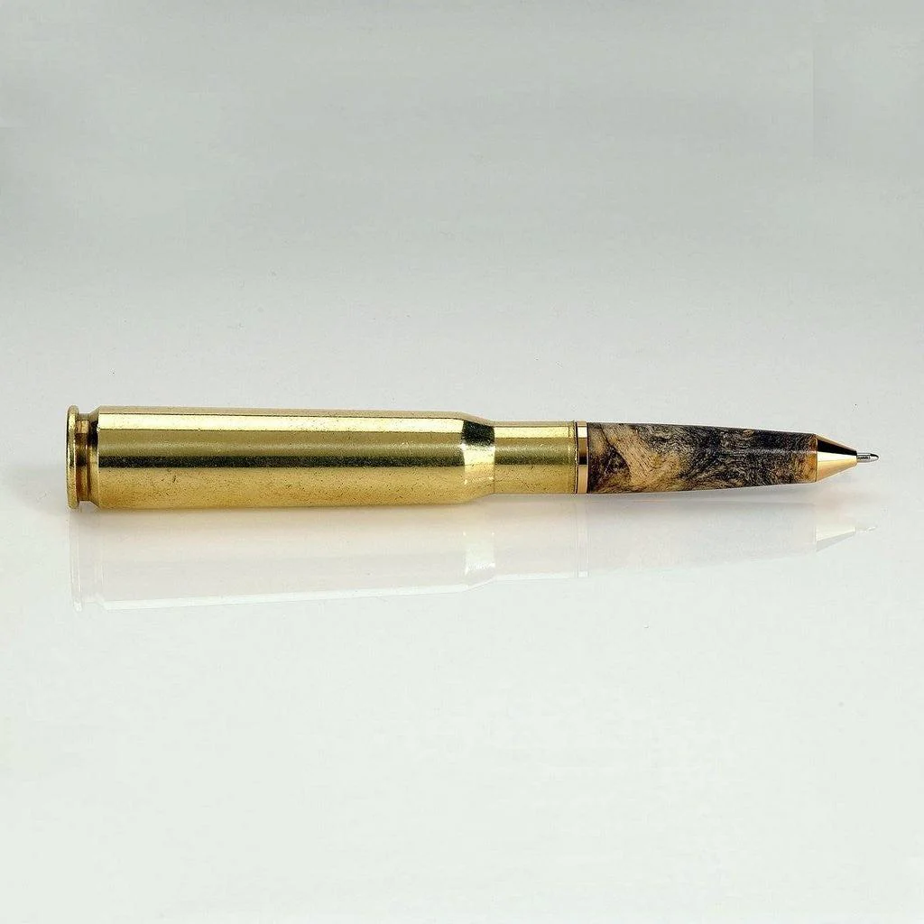 This .50 caliber bullet cartridge pen kit will make a great gift for any outdoorsman or military enthusiast. First developed for the Browning, a .50 caliber machine gun in the late 1910s, the cartridge used in this kit is commonly used in the military.
