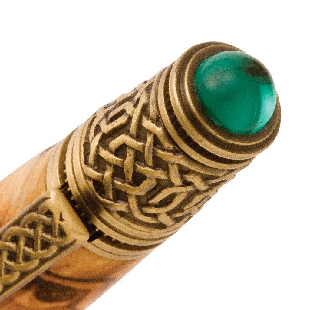 With 50 to 60 million proud Americans of Celtic descent, this pen will be an eagerly awaited gift honoring their heritage, pride, courage, and values. The pen features intricate Celtic Knot scrollwork on the tip, clip, and end as well as an emerald cabochon stone on the end. The Celtic Knot motif dates back to 5th century and represents the truth of eternity and interconnected spirit. Your gift recipient doesn't need to be of Celtic origin to appreciate this pen; the symbolism of Celtic culture is universal.